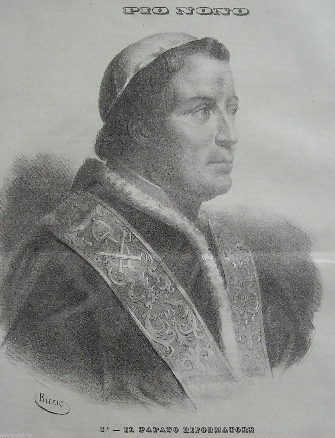 Chiesa, Papato Riformatore, Pio Nono, Bella Antica Litografia Napoletana, Riccio, 800