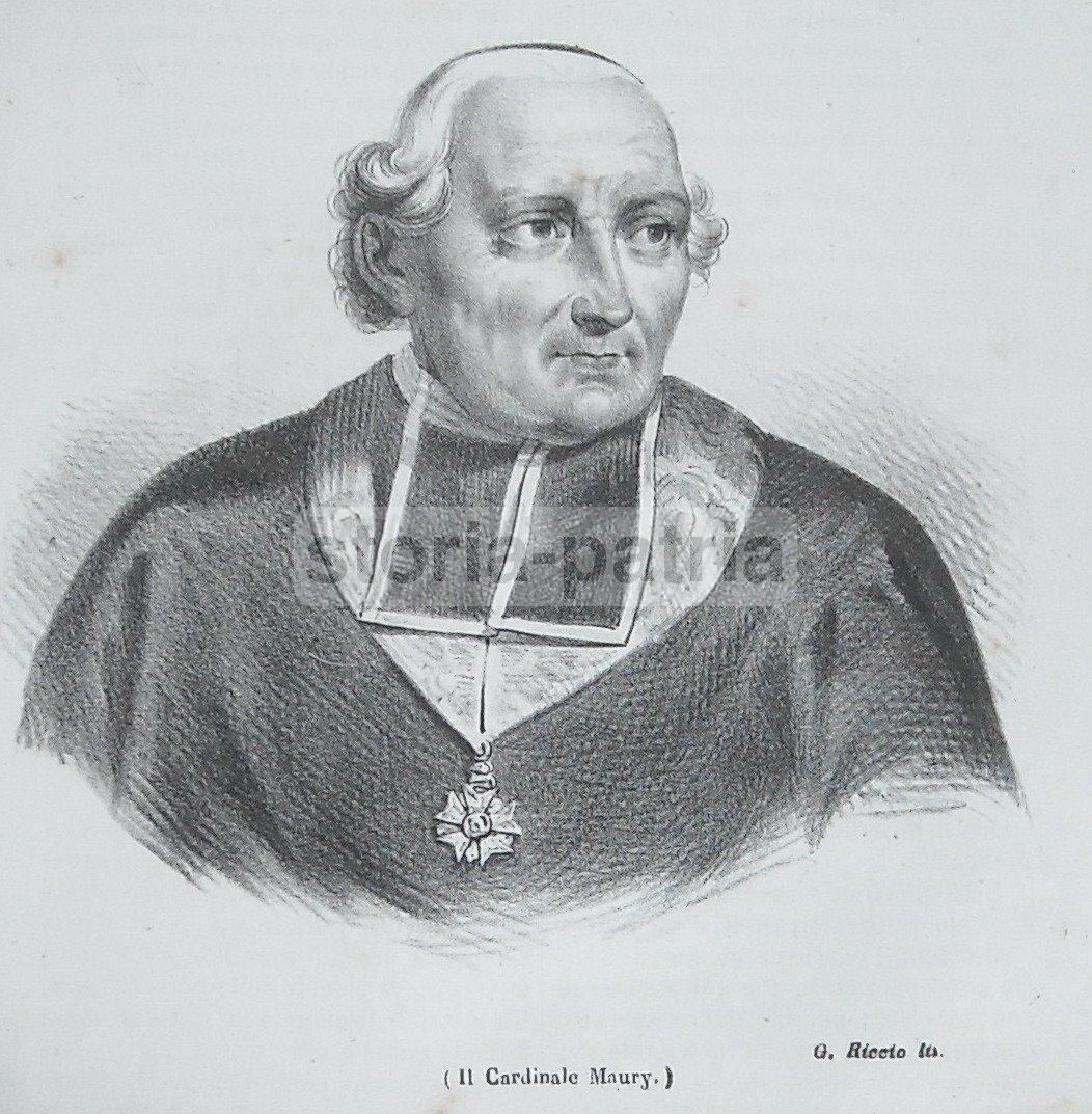 Chiesa, Teologia, Cardinale Maury, Antico Ritratto, Stampa d'Epoca, Litografia Riccio