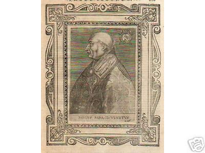I Papi Della Storia, Paolo Ii, Raro Antico Ritratto, 500