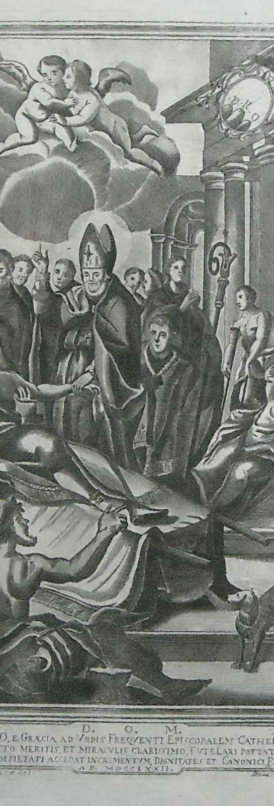 DISTRUZIONE DEL PALAZZO DI FEDERICO II Interessante e animata raffigurazione, storica e devozionale,con Santa Rosa accompagnata da un frate ...