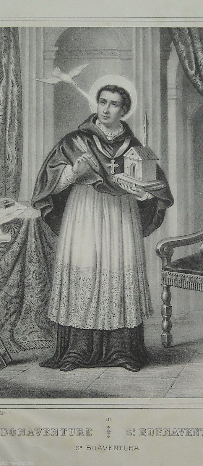 S Bonaventura, Interessante Stampa Devozionale, Antica Litografia, Bagnoregio, 800