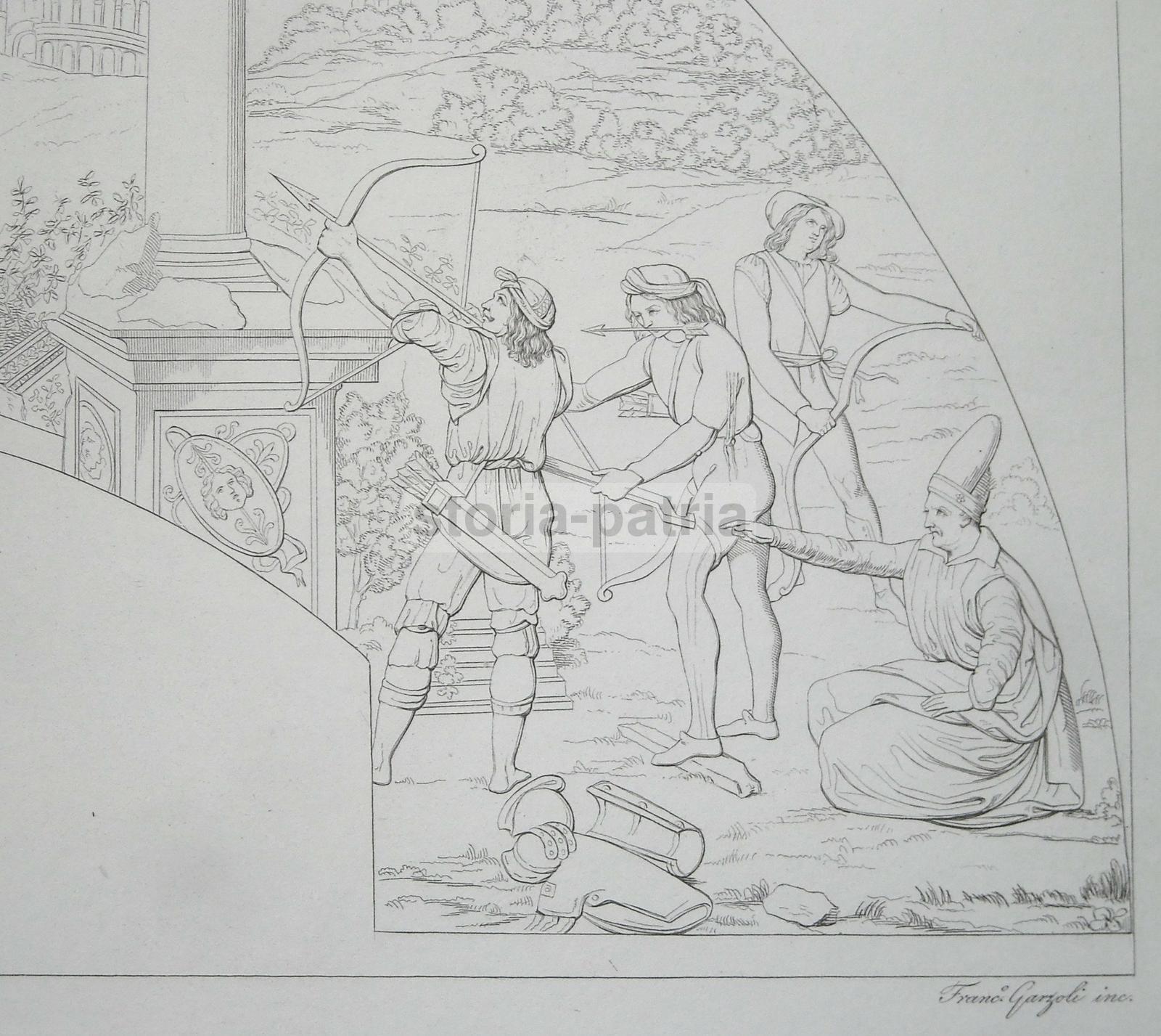 Arte, Antica Lunetta, Animata Scena, San Sebastiano, Incisore Garzoli, Fattore, 800