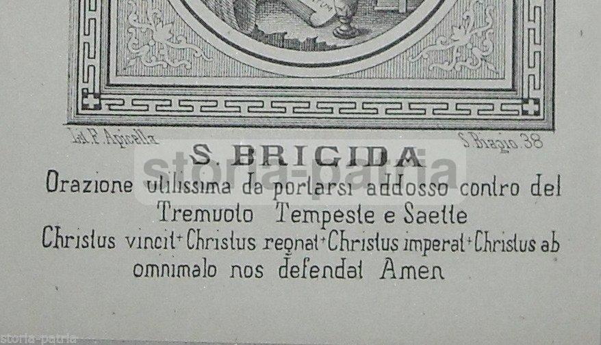 Antica Stampa Popolare Devozionale, Santa Brigida, Terremoti, Tempeste, Saette, Bella