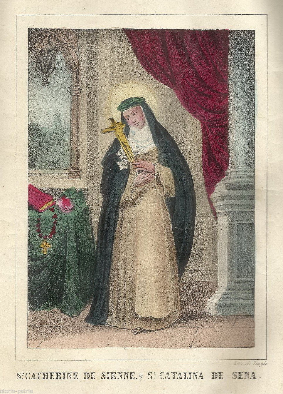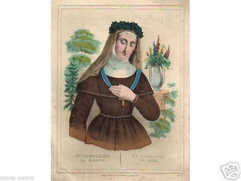 Siena, Santa Caterina, Artistica Inusuale Iconografia, Litografia A Colori, Metz, 800