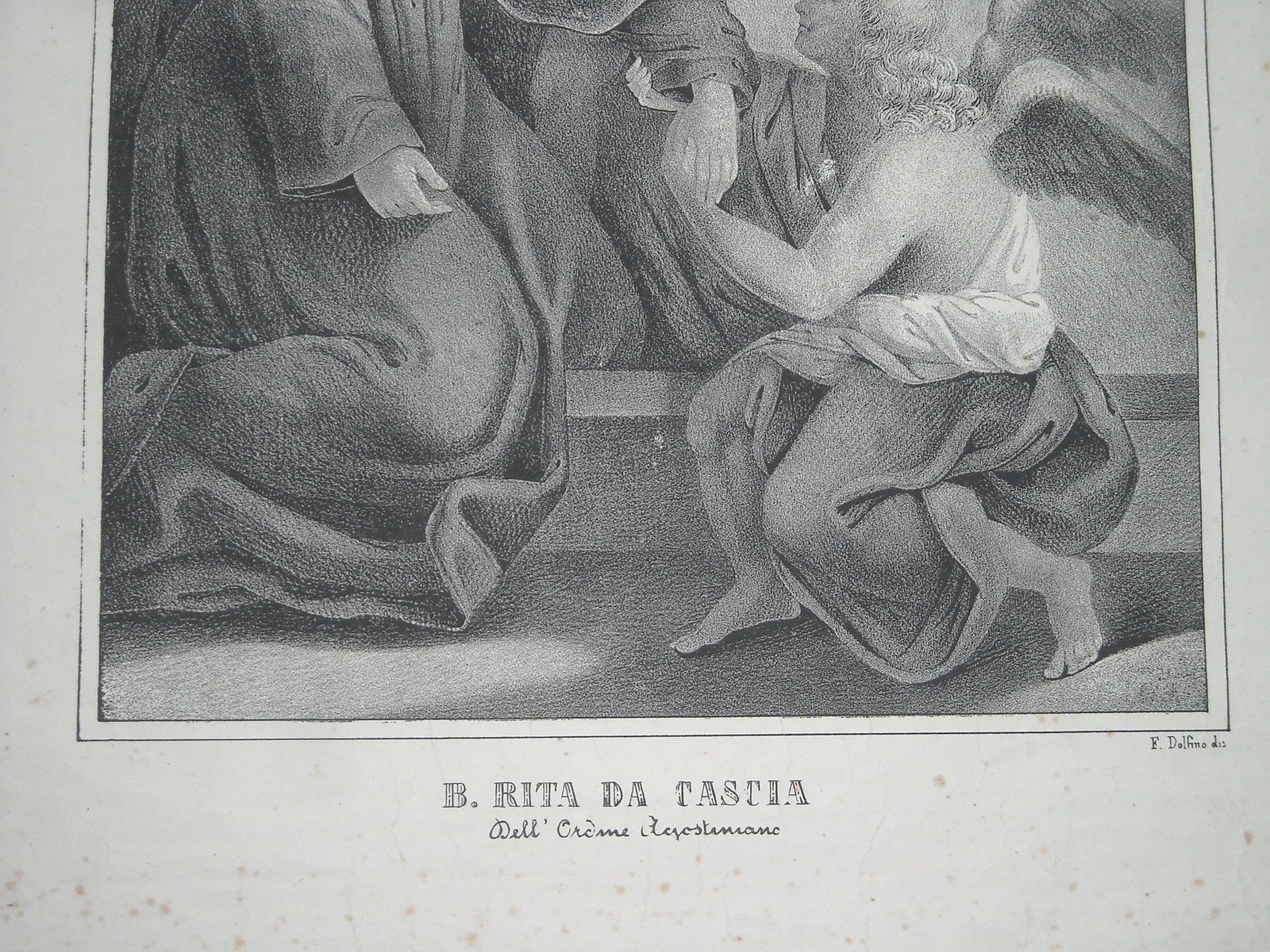 S. RITA DA CASCIA Interessante stampa a colori,con scena devozionale, raffigurante labella iconografia della nota Santa venerata sopratutto nel ...