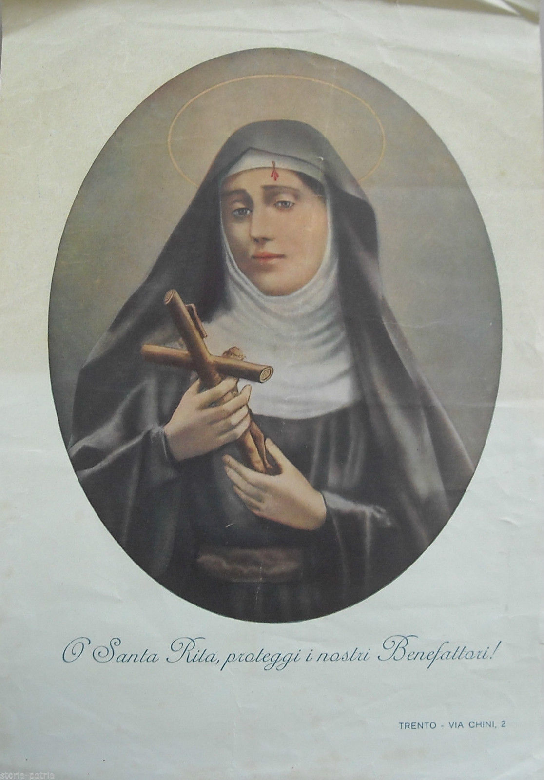Bella Stampa Popolare Devozionale, Santa Rita, Iconografia d'Epoca, Trento, A Colori