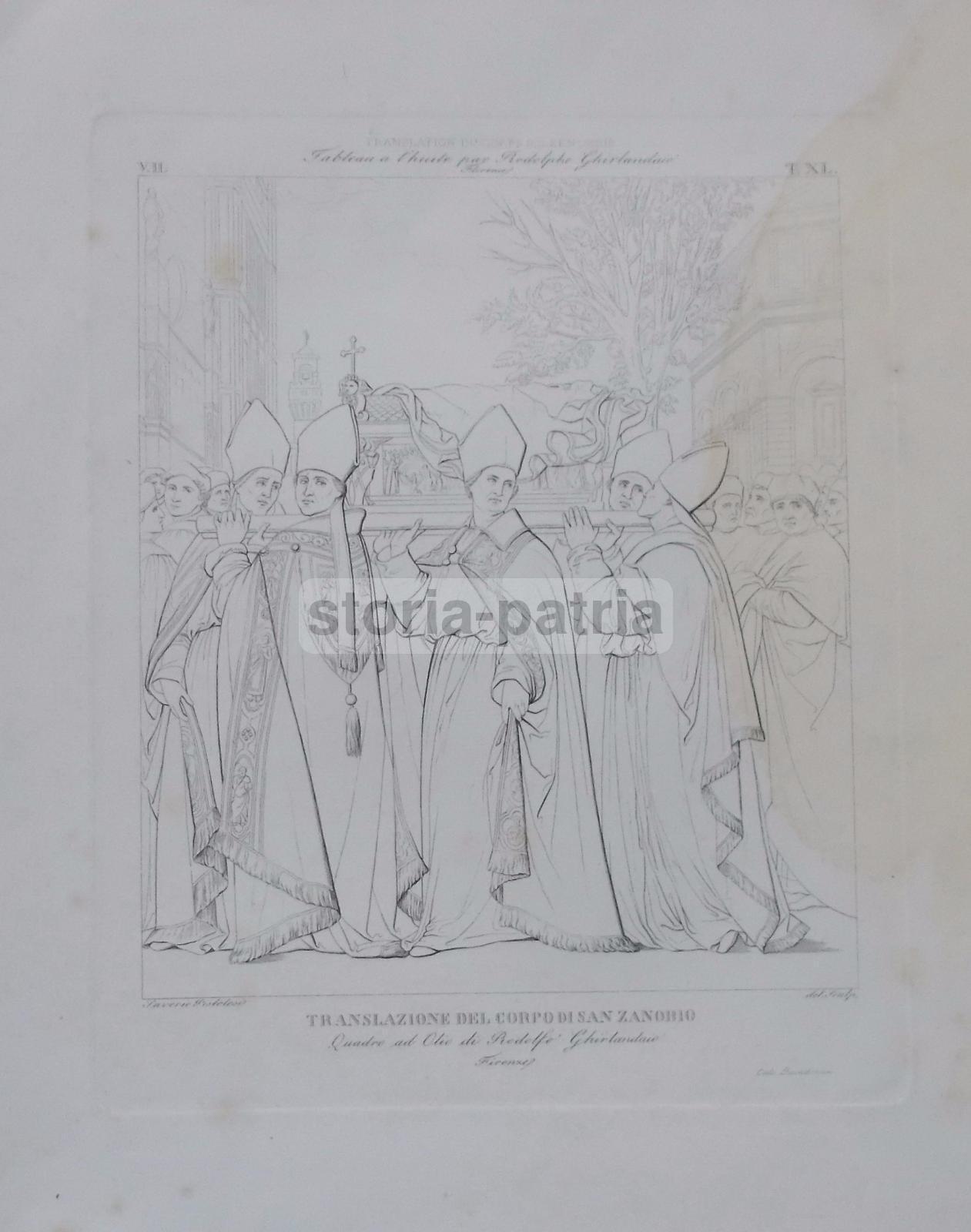Arte, Antica Stampa Devozionale, San Zanobio, Traslazione, Ghirlandaio, Pistolesi, 800