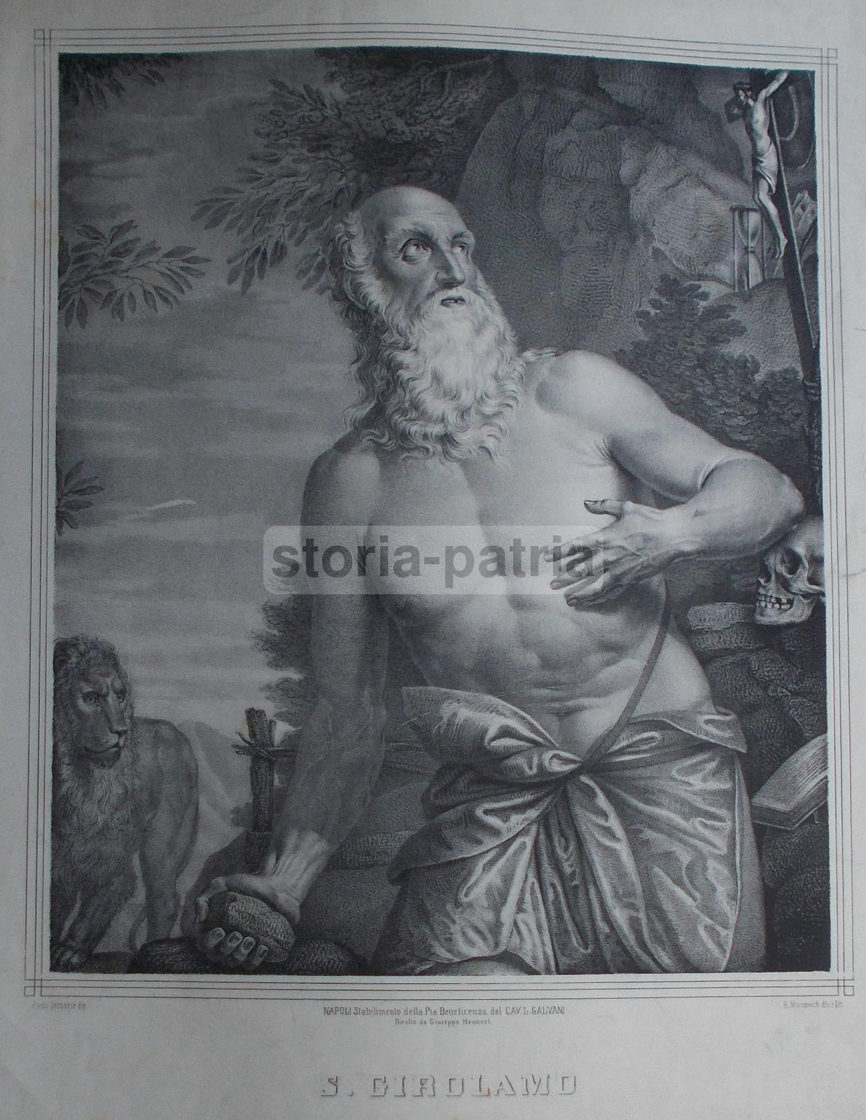 Grande Antica Stampa Devozionale, San Girolamo, Arte, Veronese, Marcovich, Napoli, 800